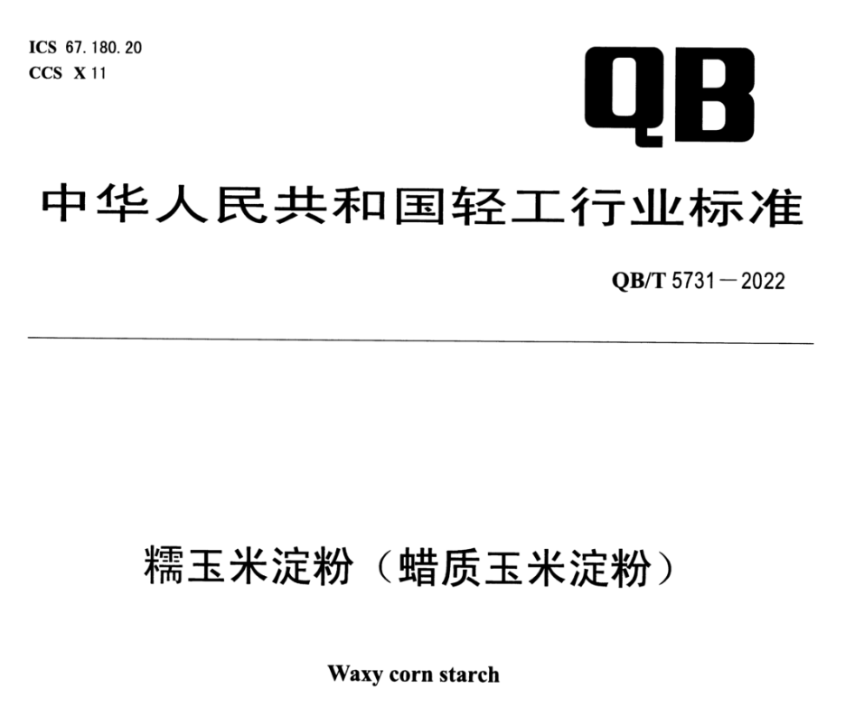 QB/T 5731-2022标准由中华人民共和国工业和信息化部于2022年4月8日发布,并于同年10月1日正式实施。该标准为首次发布,填补了糯玉米淀粉产品标准的空白,对规范市场秩序、促进产品质量提升具有重要意义。