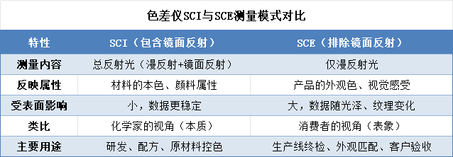 重要提示:SCI和SCE测得的数据不能直接相互比较,因为它们基于不同的光学原理。在供应链中,沟通颜色标准时必须明确约定使用哪一种测量模式,否则将导致严重的误判。