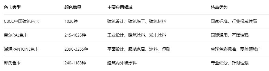 表:主要色卡类型及应用领域对比