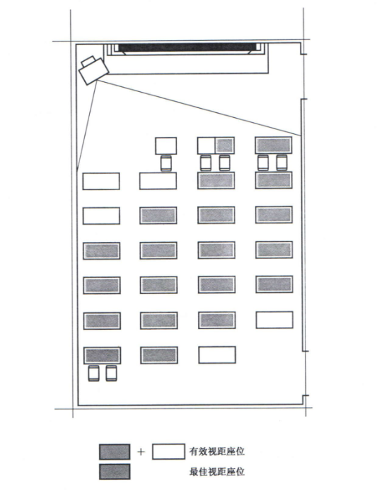 水平视角:学生视线与屏幕中心线的夹角不应超过45°(即座位不应过于偏离屏幕正前方)。