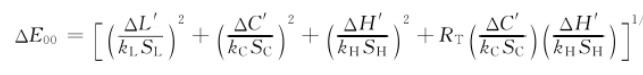 公式中的k_L, k_C, k_H是参数因子,允许用户根据具体观察条件(如纺织品的纹理、样品大小)进行微调,默认值均为1。