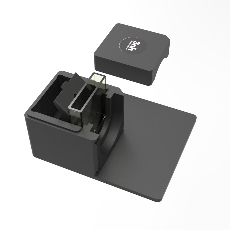如图2,扳开夹手,按图示位置装入准备好待测样的比色皿,缓慢松开夹手,使比色皿紧贴测量口径。