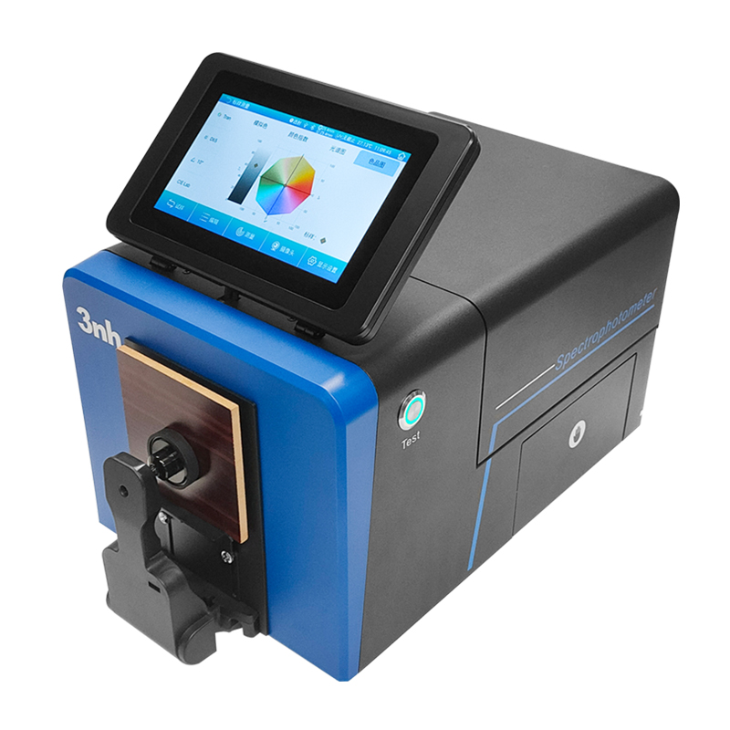 | 特性 | 1.塑胶电子、油漆油墨、纺织服装印染、印刷等行业等广泛应用。 2.7吋独立可旋转触摸屏,32G存储空间,摄像头实时取景。 3.仪器可侧面测量、朝上测量、朝下测量(使用配件)等多姿态放置测量。 4.敞开式透射仓,可测试厚度54mm透射样品。 5.自动温湿度补偿功能。 |