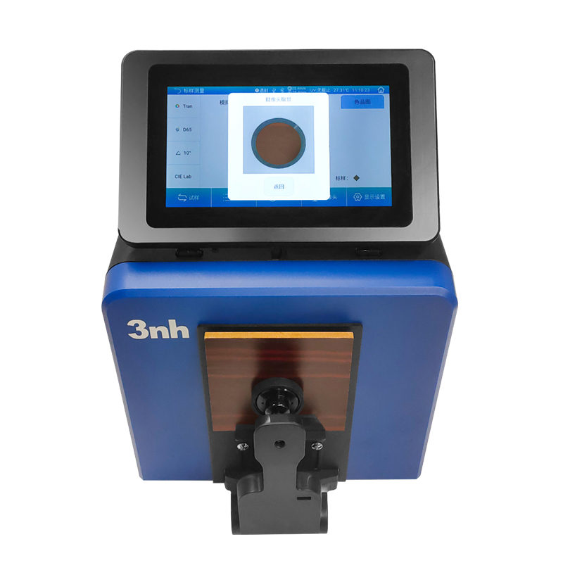 | 特性 | 1.塑胶电子、油漆油墨、纺织服装印染、印刷等行业等广泛应用。 2.7吋独立可旋转触摸屏,32G存储空间,摄像头实时取景。 3.仪器可侧面测量、朝上测量、朝下测量(使用配件)等多姿态放置测量。 4.敞开式透射仓,可测试厚度54mm透射样品。 5.自动温湿度补偿功能。 |